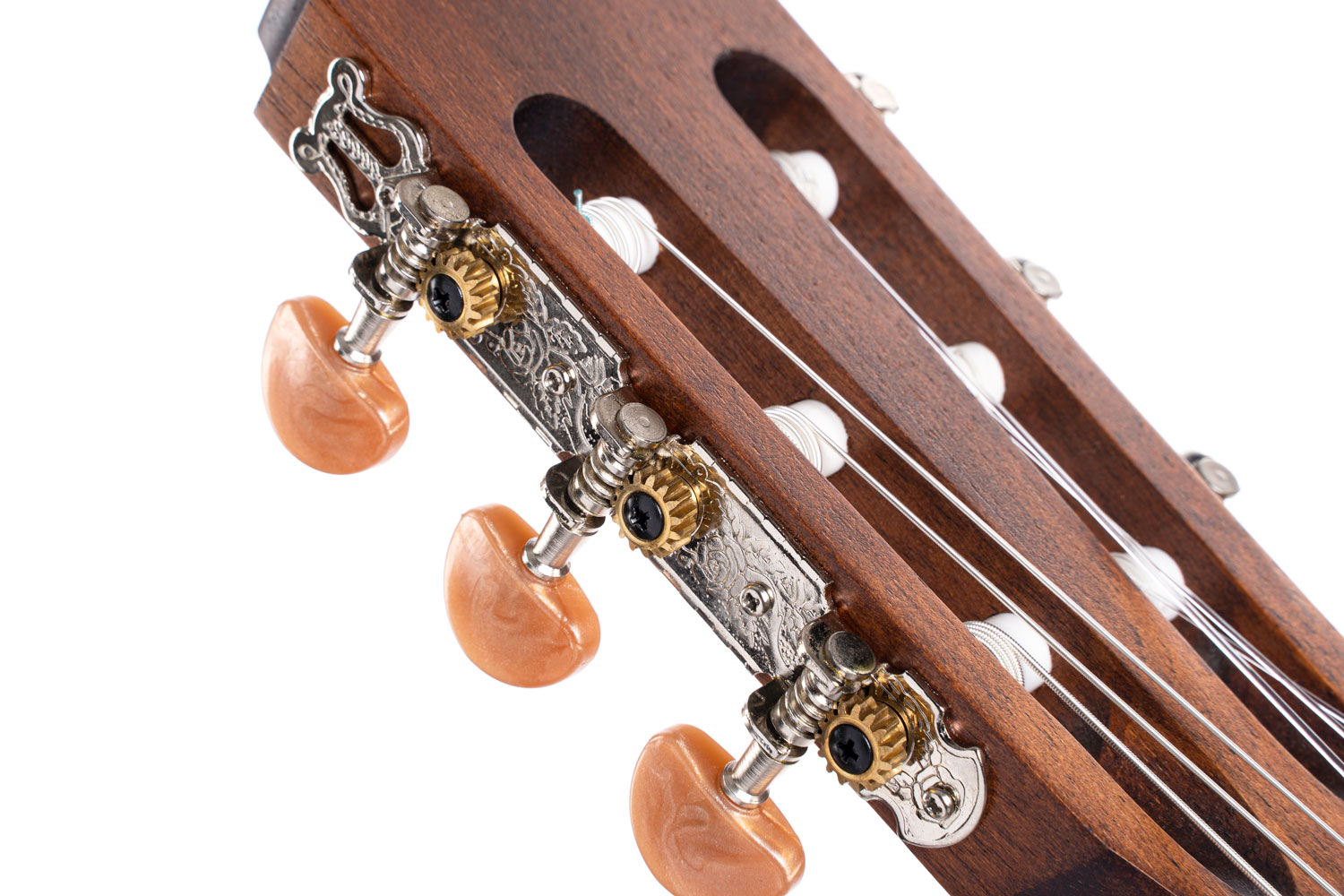 Вдосконалена віялоподібна система зв'язку верхньої деки дозволяє підсилити резонанс найлонових струн та отримати більш об'ємне звучання.