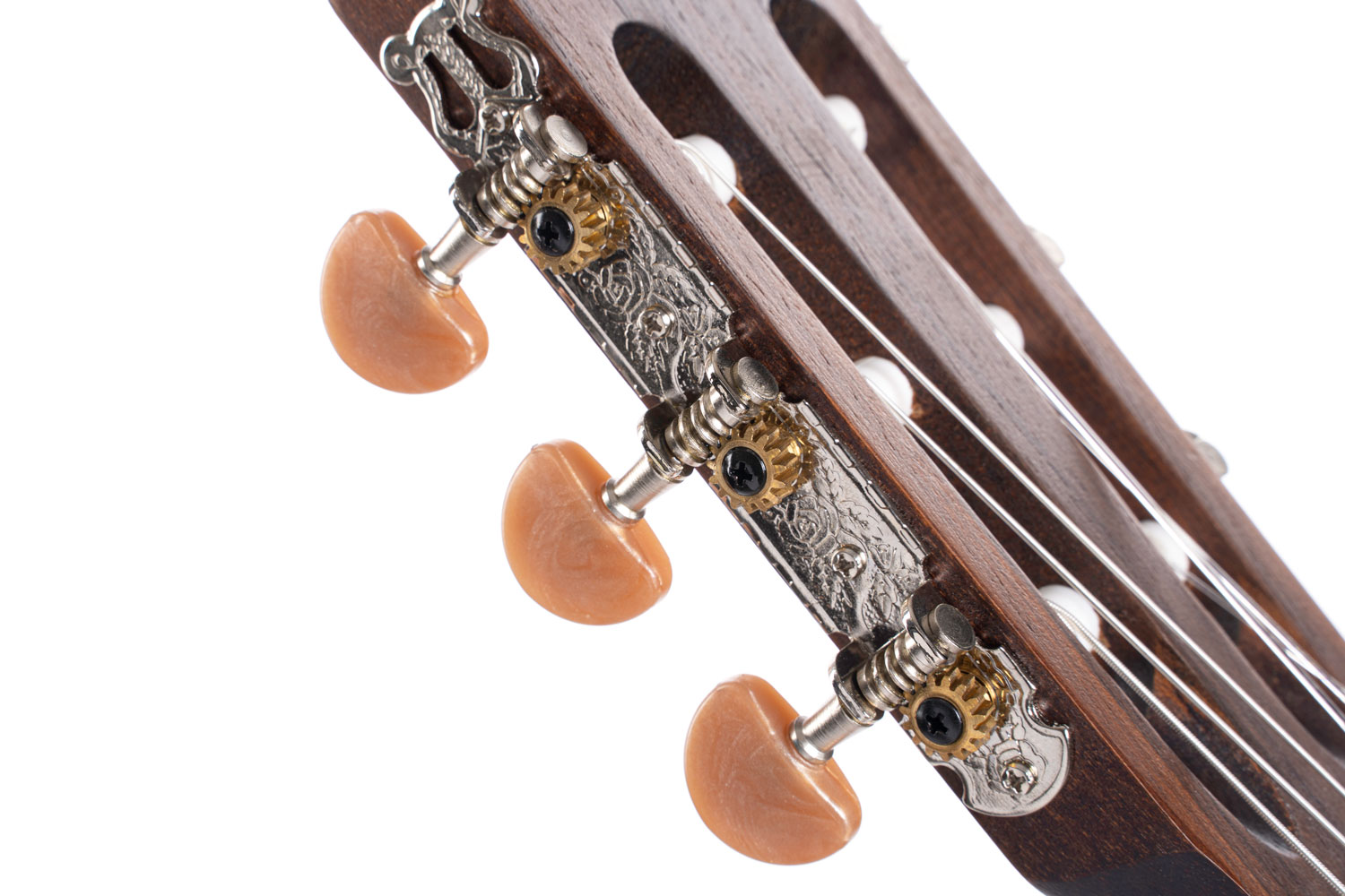 Покращена віялова система зв'язків верхньої деки дозволяє помітно посилити резонанс і вібрацію нейлонових струн і отримати більш об'ємне та насичене звучання.