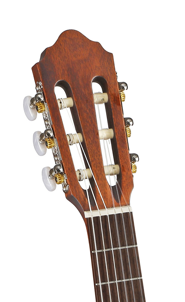 З довжиною мензури 3/4 ця гітара ідеально підходить в якості першого інструмента для юного учня. Також цю компактну класичну гітару зручно брати з собою в подорожі.