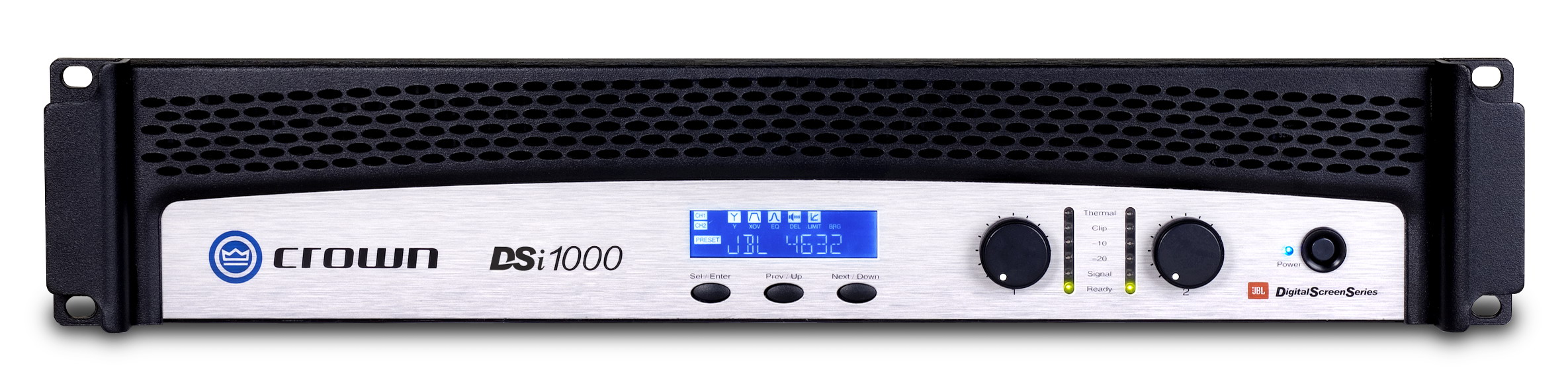 Crown DSi 1000 - усилитель мощности звука для кинозалов, который предоставляет 2 канала по 700 Вт при нагрузке 2 Ом. Оптимально сбалансированная система зала при совместном использовании с акустикой JBL.