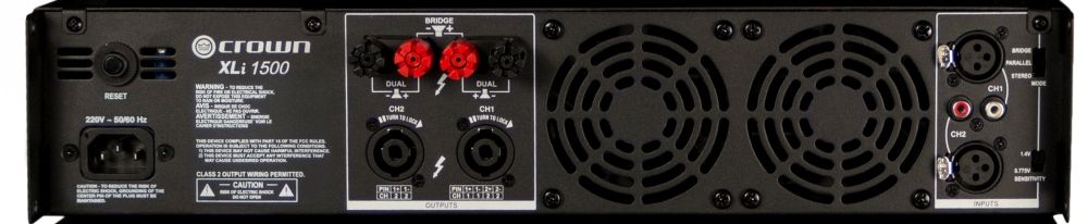 Усилитель Crown XLi 1500 представляет собой среднеценовое устройство с различными вариациями коммутационных выходов и входов. Crown XLi 1500 является последователем популярной серии усилителей Crown XLS. Модель стерео усилителя Crown XLi 1500 обладает очень надёжной конструкцией корпуса, в сочетании с хорошими показателями звукоусиления, выраженными в 450 Ватт (4 Ом) на канал. Усилитель имеет различные функции, которые в значительной степени упрощают его настройку и обслуживание.