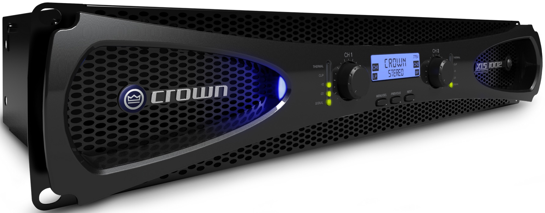 В каскаде усилителя применяются функциональные блоки питания созданные по новой схеме - это импульсные блоки питания нового поколения. Они уникальны тем, что изготавливаются с применением новой, запатентованной технологии Crown – DriveCore. Данная технология позволяет усилителю мощности с гораздо лучшей детализацией передавать звучание низкочастотной составляющей, причем делать это очень качественно даже при предельно высоких уровня выходного сигнала. На фронтальной панели этого усилителя располагаются светодиодные индикаторы, сигнализирующие о разных функциях работы усилителя и ЖК-дисплей. Световая индикация помогает обеспечить более точную и быструю настройку усилителя, а также визуально провести работоспособность и полную диагностику устройства. Усилитель выполнен в рэковом корпусе, имеют высоту 2U и очень малый вес 4,9 кг.