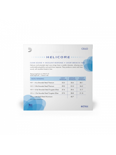 Струни Helicore для віолончелі, виготовлені з багатожильного сталевого сердечника, що забезпечує оптимальну зручність гри, відтворюючи чисте тепле звучання