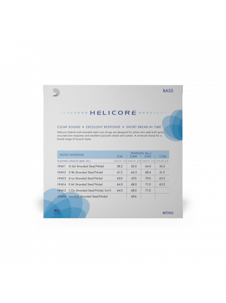 Струни Helicore Hybrid для контрабаса - це багатожильні струни зі сталевим сердечником, які виробляють помірно теплий тон