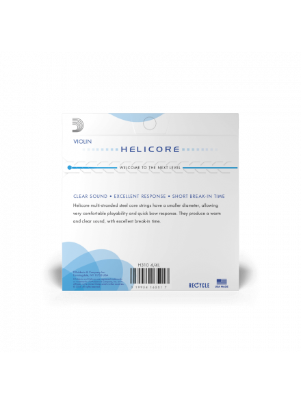 Зменшений діаметр струни забезпечує швидку реакцію при грі смичком. Використання високоякісних матеріалів в поєднанні з багаторічним досвідом виготовлення, дозволяє отримати струни з прекрасним інтонувати, швидким відгуком від торкання смичка, яскравим тембром звучання і відмінною стабільністю ладу. Струни D'Addario Helicore ідеально підходять як для просунутих студентів так і для професіоналів.