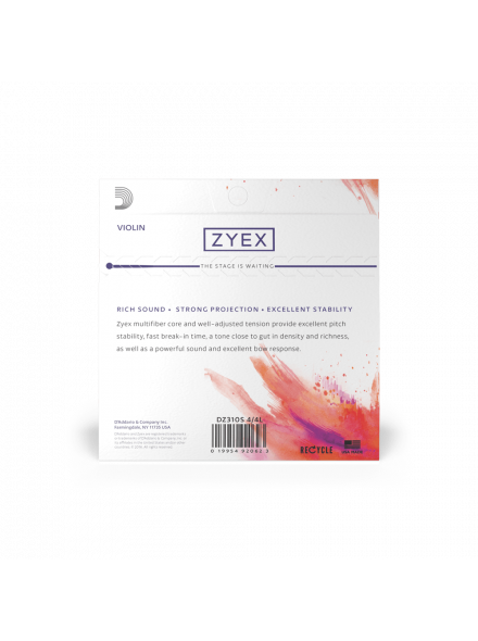 Протягом декількох годин скрипкові струни Zyex дають усадку, створюючи більш теплий звук, ніж у інших струн з синтетичним осердям.