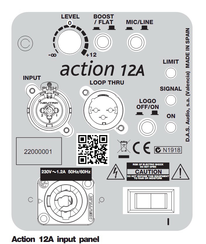 - Разъем питания: PowerCON NAC3FCA