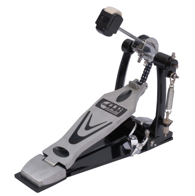 Одиночная педаль для бас барабана, двухсторонняя колотушка, двойная цепь, на платформе.