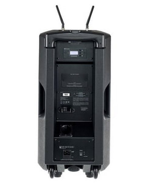 Пользователи также могут подключать выход к второй АС. Секция управления оснащена эквалайзером и функцией приоритета CH1/RF, которая ослабляет уровень каждого канала Ducking эффектом. Компактный корпус (всего 12,5 кг) оснащен колесами и 3 ручками (2 боковых и 1 выдвижной наверху).