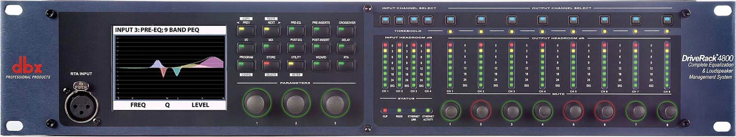 DriveRack® 4800 – «топовая» модель завоевавшей заслуженную популярность системы управления звукоусилением dbx DriveRack. Устройства обеспечивают удобный контроль, гибкость в коммутации и превосходное качество звучания, столь необходимые для инсталляций и концертов. Функция Wizard, включающая секции создания конфигурации, автоматической эквализации (Auto-EQ) и подавления обратной связи (AFS™), расширяет возможности DriveRack 4800 и существенно упрощает процедуру настройки акустических систем.