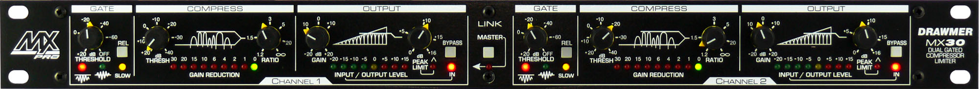Компрессор/лимитер/гейт MX30 - это профессиональный динамический процессор по доступной цене, оснащенный несколькими схематическими решениями разработанными компанией Drawmer и использующиеся в более дорогих моделях. MX30 имеет множество автоматических функций, обеспечивающих быстрое и эффективное динамическое управление, сохраняя при этом знакомое размещение органов управления, звуковых характеристик и высоких технические новшеств, которые сделали прибор Drawmer стандартом аудио индустрии. Конкурентоспособная цена MX30 делает его доступным более широкой аудитории музыкантов, проджект студий и исполнителей на сцене.