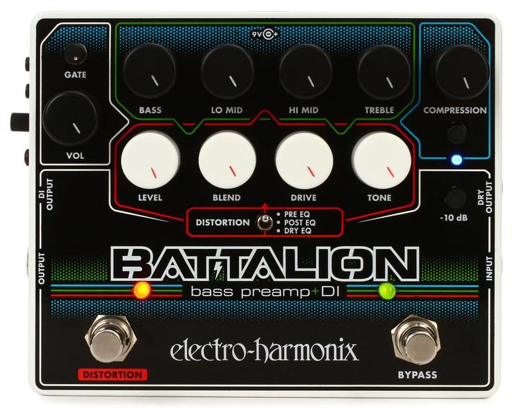 Electro-harmonix Battalion - это полностью аналоговый предусилитель и DI box, предназначенный для качественного предусиления и функций, наиболее часто используемых бас гитаристами в режиме реального концерта и записи. В дополнение к предусилителю и DI, он предлагает дисторшн, эквалайзер, компрессор и гейт.
