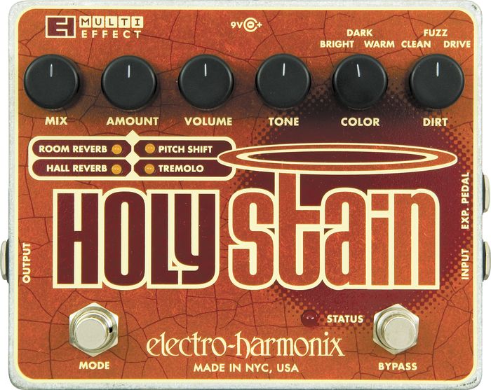 Electro-Harmonix Holy Stain – это первая педаль с множеством эффектов в одном корпусе. Эта педаль сочетает такие пространственные эффекты как реверберация, тремоло и питч шифтер, а также полностью аналогового перегруза и фузза. Огромное количество ручек и возможностей настроек поможет создать уникальный звук для любых целей и невероятные комбинации тона для тех, кто находится в вечном поиске чего-то нового. Или же можно не углубляться в эксперименты и использовать классические эффекты по отдельности.