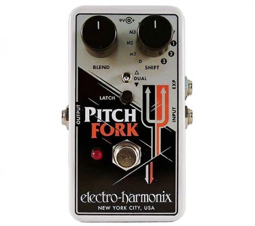 Новая EHX Pitch Fork может менять тон инструмента на плюс/минус три октавы и имеет три режима, с помощью которых можно транспонировать тон вверх, вниз или вверх/вниз одновременно. Размер шага питч шифта можно установить на фиксированный интервал или постоянно изменять с помощью педали экспрессии.