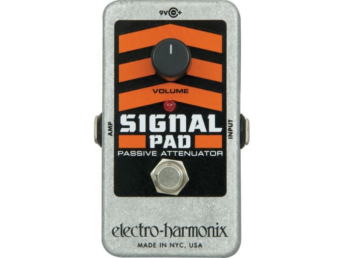 Electro-Harmonix Nano Signal Pad – это педаль, выполняющая роль дополнительной ручки громкости и являющаяся очень полезным устройством на борде. С ее помощью можно резко переключиться от перегруза до чистого звука. Достаточно выставить на усилителе высокую громкость для перегруза, а на педали выставить пониженную громкость для чистого звука.