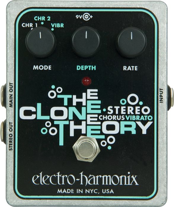 Electro-Harmonix Stereo Clone Theory – это реинкарнация педали Clone Theory из 70-х, получившей всемирное признание на мировой арене хоруса. Главным нововведением можно считать возможность работы в стерео, что немаловажно для хорус-педалей в наше время. В остальном органы управления остались те же: ручка, позволяющая выбирать между тремя режимами (хорус 1, хорус 2 и вибрато) и ручки регулирующие скорость и силу эффекта.