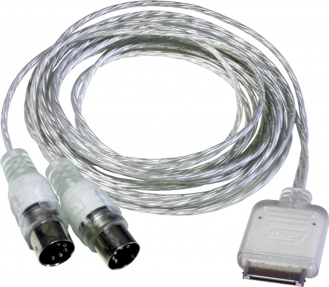 MIDI-интерфейсный кабель с входом и выходом для iPhone, iPod touch и iPad.