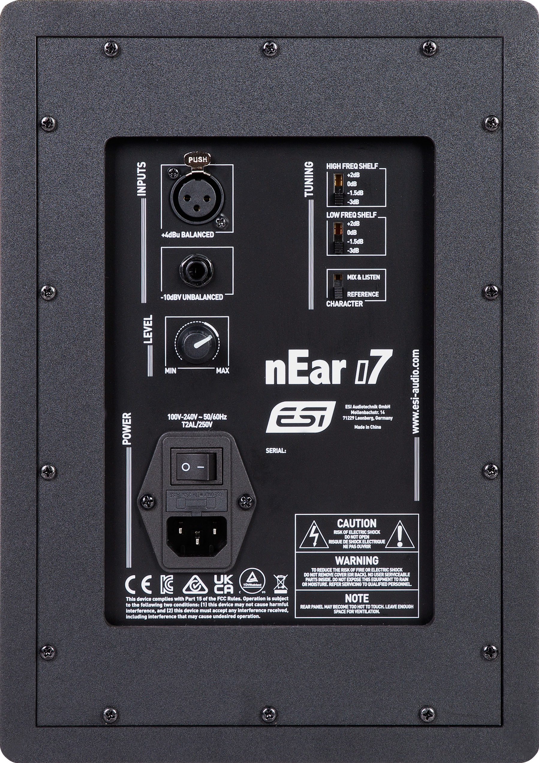 Засновані на базі вже відомих студійних моніторів ESI nEar, три нові моделі гучномовців nEar i5, i7 та i8 (5”, 6,5” та 8” формату відповідно) встановлюють для користувачів початкового рівня високі стандарти якості професійного рівня. -Паперовий НЧ-динамік -Унікальний дизайн -Прецизійне еталонне звучання -Варіанти кріплення на стіні або фермі -Доступна ціна Високоефективне підсилення класу D з DSP-обробкою забезпечує надзвичайно рівну АЧХ від самих низів, а новий високочастотний драйвер із шовковою купольною діафрагмою та спеціальний низькочастотний динамік з паперовим дифузором, виготовленим з міцних та екологічно чистих волокон відтворюють звук максимально чесно, забезпечуючи неперевершену потужність у діапазоні низьких і середніх частот, пропонуючи найкращі характеристики у своєму класі.