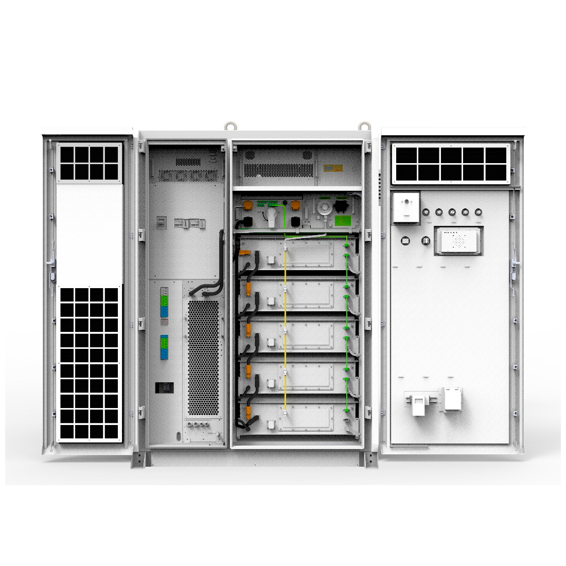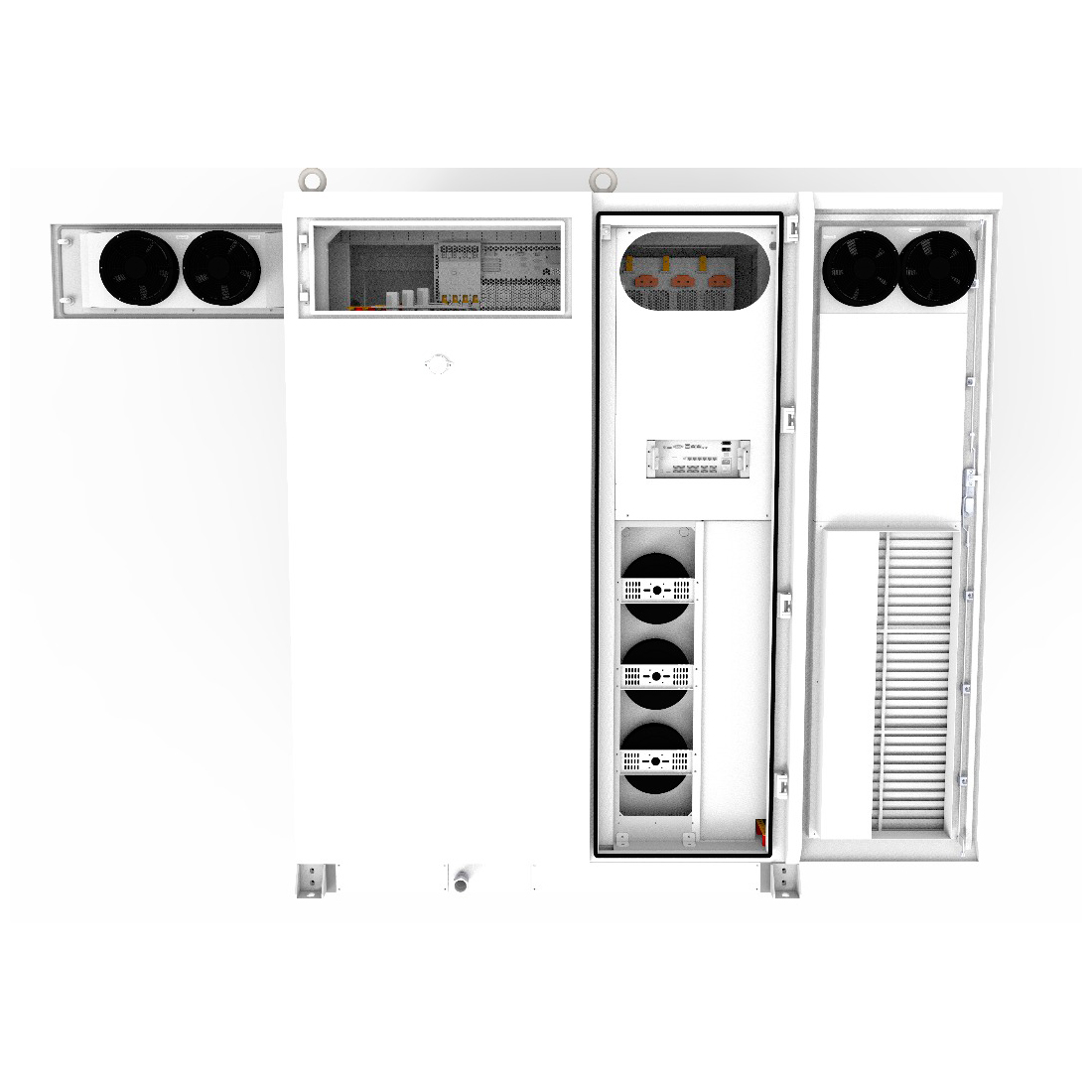 - Високий ступінь інтеграції: всі компоненти (акумулятори, інвертор, система охолодження та автоматики) розміщені в єдиній компактній шафі, що спрощує логістику та монтаж.