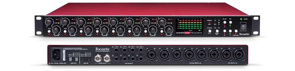 Focusrite Scarlett OctoPre Dynamic 8 канальный предусилитель со встроенным компрессором и АЦ/ЦА конвертерами 24 бит/192 кГц на ADAT интерфейсе.