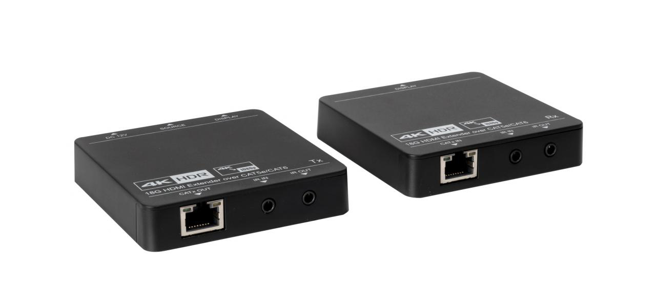Удлинитель-конвертер (передатчик и приемник) для передачи HDMI сигнала по кабелю Cat6 на расстояние до 70 метров при разрешении UHD 4K при 60 Гц и FULL HD 1080p, защита HDCP 2.2, PoC питание,в комплекте БП 12В/1А.