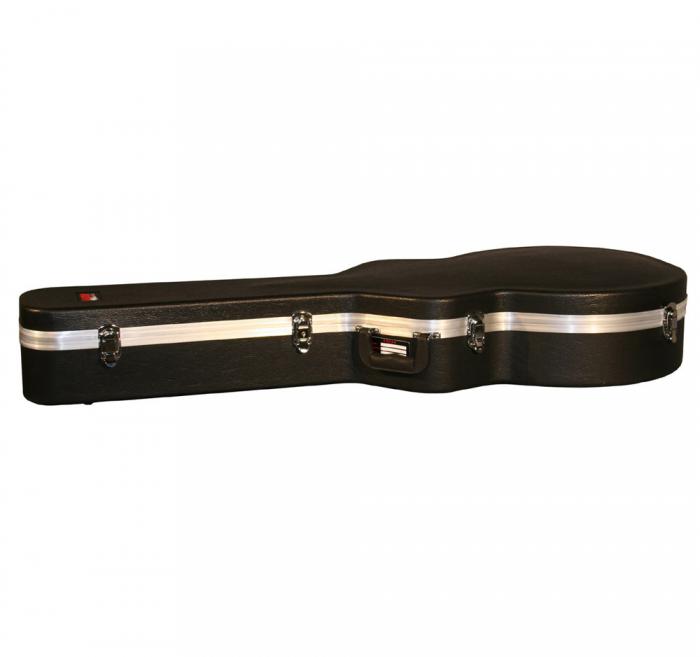 Жесткий кейс для электрогитары типа 335 серии Deluxe, материал: ABS пластик, алюминиевый каркас, EPS начинка c флисовым ворсом, ниша для аксессуаров, внутренние размеры: 1080х419х114 мм, вес: 5,2 кг.
