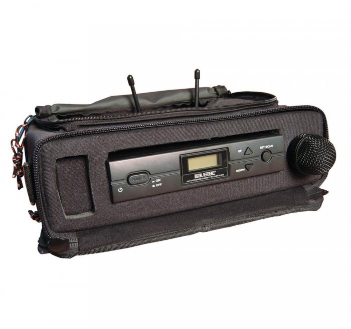 Сумка для радиосистемы (база c ручным микрофоном), замки спереди и сзади, внешний отсек для аксессуаров, ремень на плечо, внутренние размеры: 216 х 203 х 51 мм, вес: 1,8 кг.