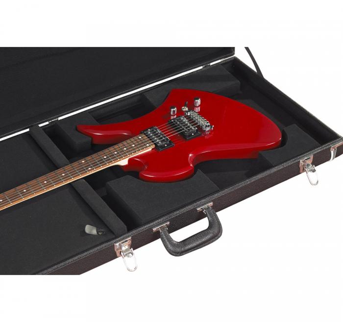 Жесткий кейс для электрогитар типа Flying V, Explorer, BC Rich, Jackson, материал: дерево, оббивка ПВХ Tolex, внутренняя начинка c флисовым ворсом, ниша для аксессуаров, хромированные замки.
