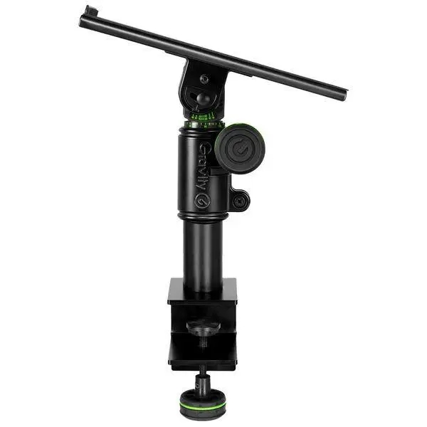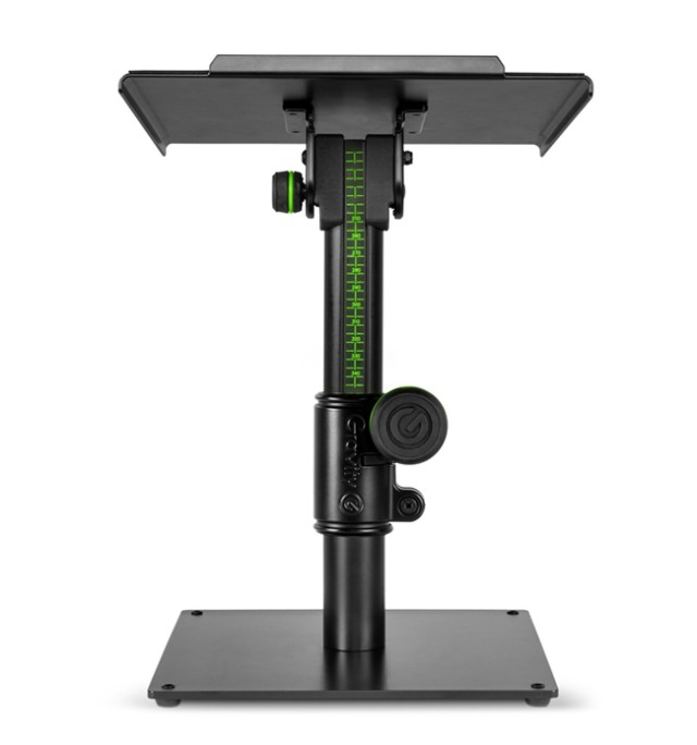 Настільна підставка для студійного монітора, регулювання висоти 250-350 мм, платформа: 240x250 мм, нахил: +/- 15°, поворот на 360°, товщина стільниці до 100 мм., вантажопідйомність: 25 кг, вага 2.7 кг.