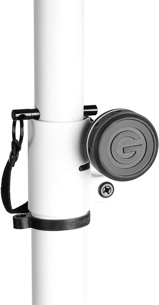 Стійка для акустичних систем, регулювання висоти 1060-1950 мм, 1 секція, посадковий Ø-35 мм, змінні маркувальні кільця: 5x30 мм, фіксатор: стержень, вага 2.2 кг, максимальне навантаження: 50 кг, колір: білий.