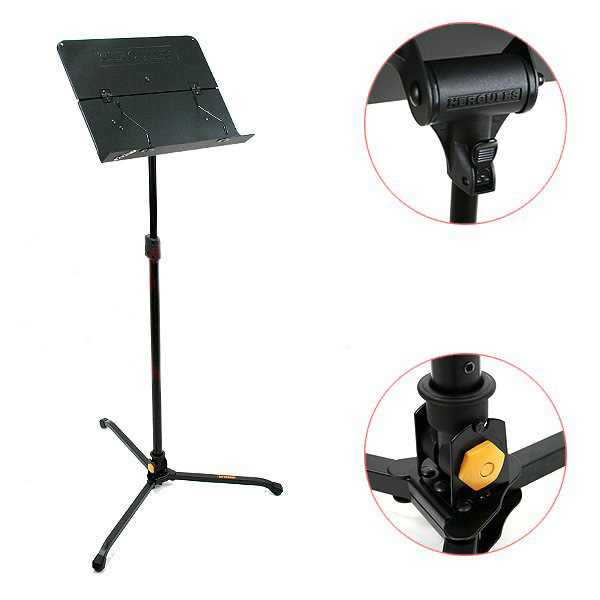 Оркестровый 2-х секционный пюпитр на треноге, Механизм EZ Angle Roller и EZ Clutch, размер площадки 480x345 мм, 2 отверстия под держатель, высота 680-1150 мм, вес 3 кг.