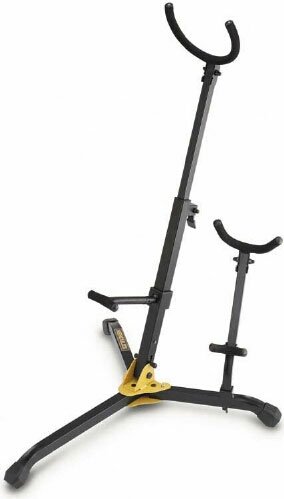Двойная стойка для альт/тенор саксофона и саксофона сопрано с настраиваемыми, покрытыми мягким пеноматериалом кронштейнами и чехлом, высота: 395 мм, сложенная: 310x135 мм, вес 1.1 кг.