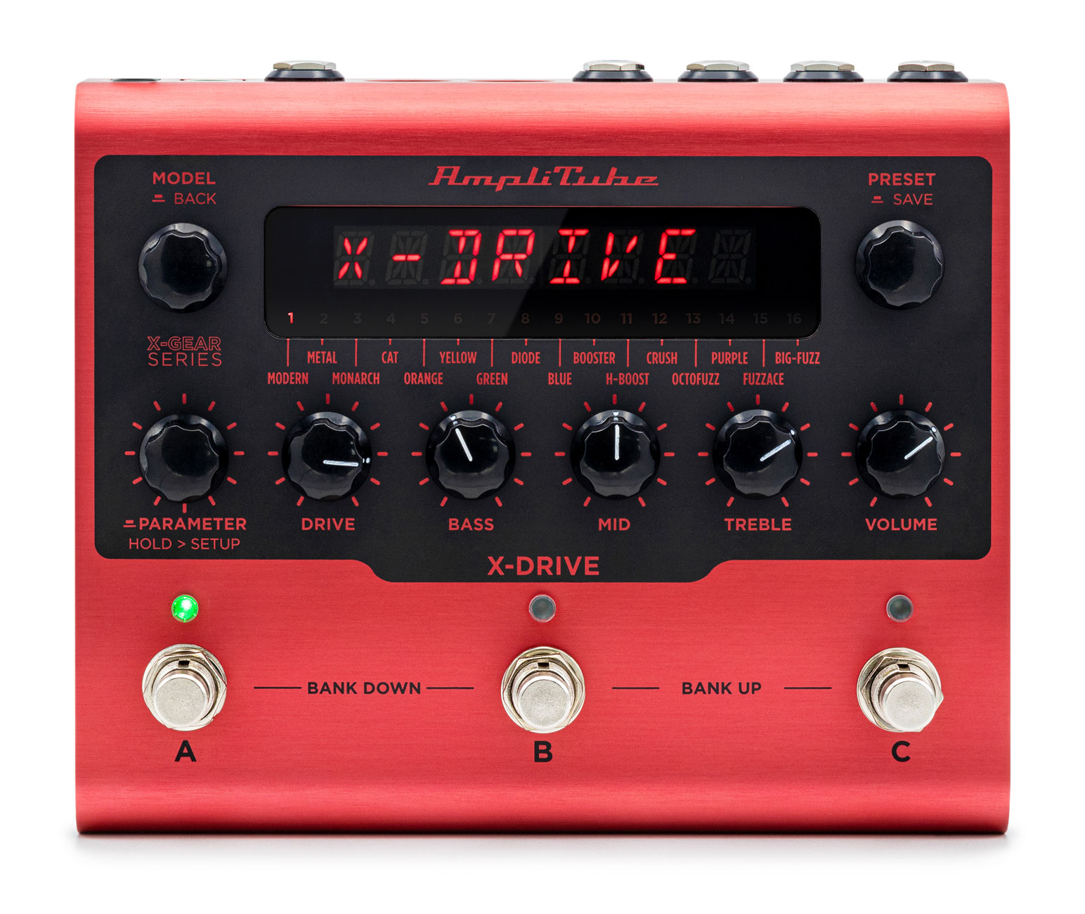 Тепер ідеальне студійне звучання вашої гітари доступне на сцені завдяки новій педалі модуляції AmpliTube X-DRIVE. Ця ексклюзивна педаль має 16 абсолютно нових ефектів дисторшн, які використовують останні технології AmpliTube від IK. Крім того, вона має ексклюзивну віртуальну версію цих ефектів - X-GEAR. Ви можете використовувати віртуальну версію з AmpliTube 5, щоб записувати звук, змінювати налаштування і зберігати їх як пресети на педалі X-DRIVE. Тепер світовий клас звуку з вами всюди.