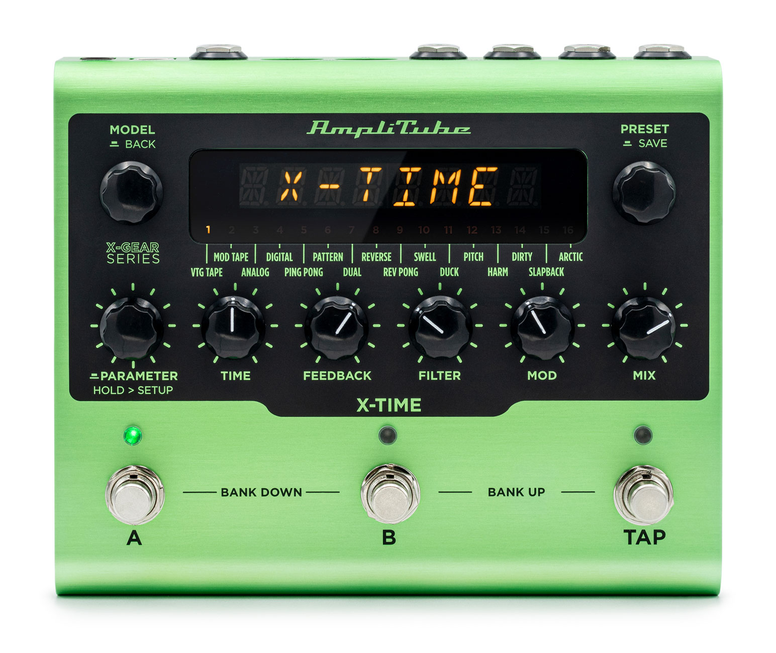Тепер ви можете насолоджуватися ідеальним студійним звучанням вашої гітари прямо на сцені завдяки новій педалі затримки AmpliTube X-TIME. Ця ексклюзивна педаль має 16 абсолютно нових ефектів затримки, розроблених з використанням передових технологій компанії IK в AmpliTube, а також унікальна віртуальна версія цих ефектів - X-GEAR. Використовуйте віртуальну версію з AmpliTube 5 (в комплекті йде версія SE) для запису звуку, зміни налаштувань та збереження їх як пресетів на педалі X-TIME. Відтепер ви можете мати з собою звук світового класу скрізь, куди б ви не пішли.