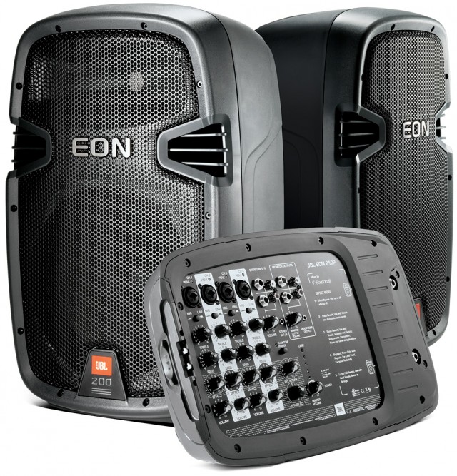 В EON210P используется широкополосный 250 мм (10 дюймов)динамик и неодимовый компрессионный высокочастотный драйвер диаметром 37,5 мм (1,5 дюйма),соединенный с рупорным рассеивателем 100° х 60°, которых питает усилитель Crown ® класса D мощностью 300 Вт от внешнего микшера.На пульте имеется 8 входов, из них 4 имеют LED индикацию пиков сигнала.Комбинированный разъем для подключения с селектором MIC/LINE, эквалайзер высоких и низких частот,эффект реверберации,и главный регулятор уровня.Используя 2 стерео входа можно подключать микрофоны, музыкальные инструменты, внешние источники звука такие как MP3 плееры или проигрыватели компакт-дисков. Другие стерео входы stereo 5/6 оснащены ¼ TRS и RCA разъемами. Дополнительный разъем обозначенный stereo 7/8 представляет собой стандартный 3,5 мм стерео вход, обычно используемый музыкантами для мониторинга. На выходе пульта все сигналы суммируются и усиливаются.