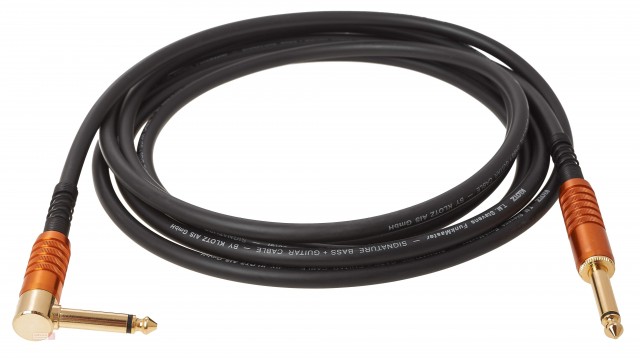 Готовый профессиональный несимметричный гитарный/бас кабель, длина 3 м, позолоченные контакты, коннекторы Klotz, 1/4 TS Jack - 1/4 TS Jack (угловой), изоляция оболочки PVC, цвет черный.