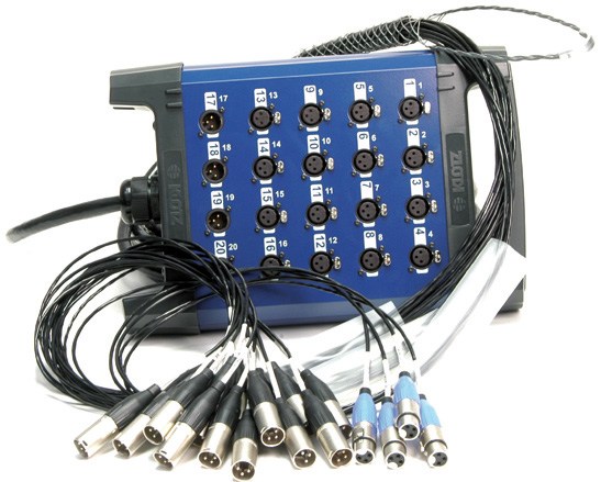 Компактный мультикор для студий и инсталляций, 20 вх. XLR-F и 4 вых. XLR-M, корпус из прочного алюминиевого профиля окрашенного в темно-синий цвет с держателем кабеля, длина 20 м, общее заземление, кабель PolyWire (PVC),...
