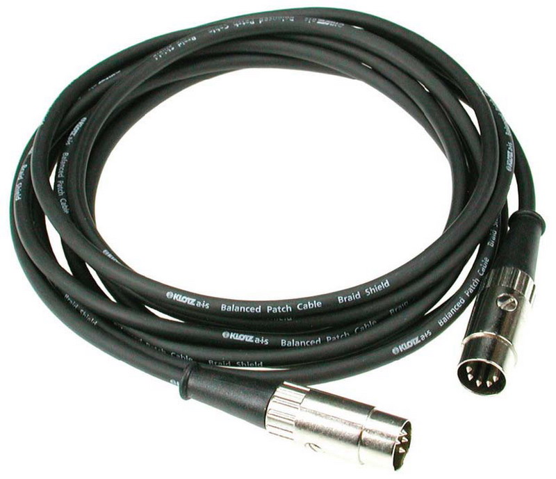 5-контактный 3-х жильный MIDI кабель с никелированными контактами, изоляцией оболочки из PVC и разборными металлическими коннекторами.