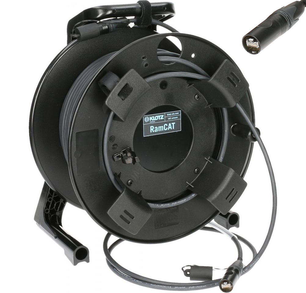 Готовый кабель СAT6 (SF/UTP) на барабане GT310, туровая серия RamCAT, герметичные коннекторы NE8MX6-B-T etherCon-etherCon, pinout: TIA/EIA 568-C.2, кабель с двойным экраном RC6-LB1RJ - 4x2x0.10 мм² (AWG26/19), оболочка PUR, импеданс 100 Ω, длина 70 м, наружный Ø-7.0 мм, цвет чнрный.
