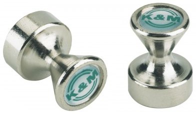 Миниатюрные супер магниты, стальной кожух с логотипом K&M, размеры 12×16 мм, вес 10 г, в комплекте 2 шт.