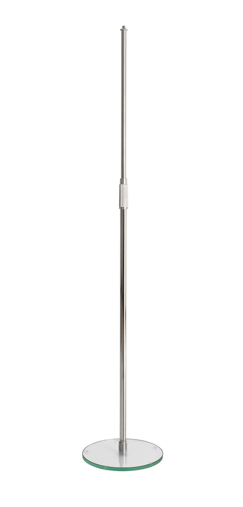 Хромированная микрофонная 2-х секционная стойка телескопического типа со стеклянным основанием, резьбовое крепление 3/8, регулировка высоты 870/1570 мм, диаметр основания 250 мм, вес 2.5 кг.