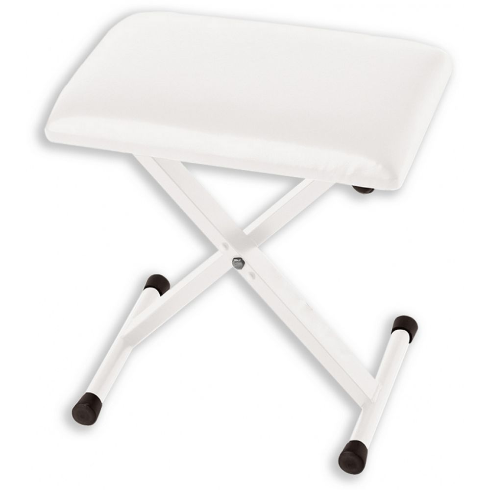Стульчик пианиста, прямоугольное сидение, Х-образные ножки, 3 положения высоты, цвет белый.