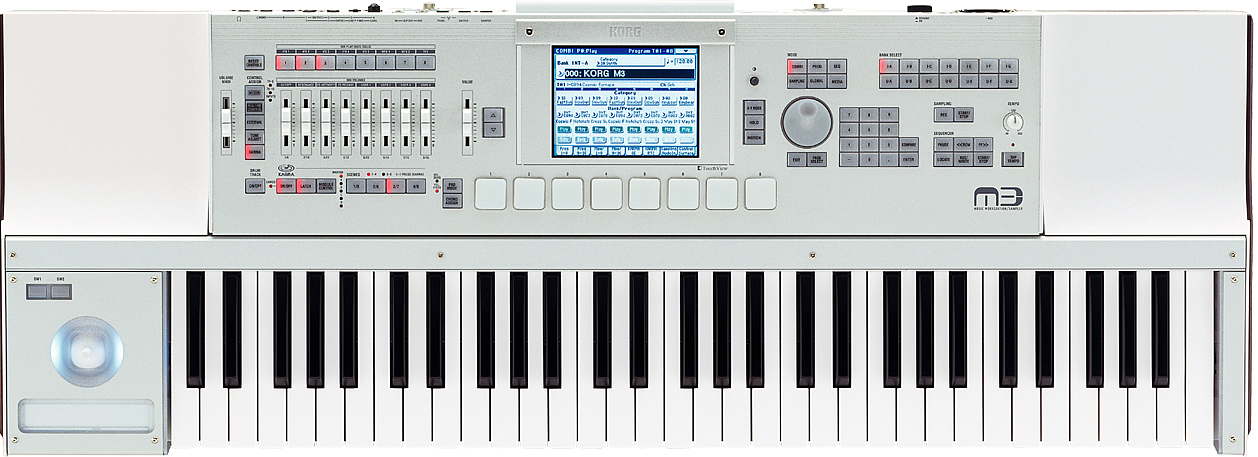 KORG M3-61 Клавишная рабочая станция, 61 клавиша ROM-память: 256 Мб. RAM-память: 64Мб, расширяется до 320. Полифония 120 голосов. Технология KARMA 2.0. Одновременно до 5 разрыв-эффектов и до 2 мастер-эффектов. 2304 программы, 2176 комбинаций, 176 наборов