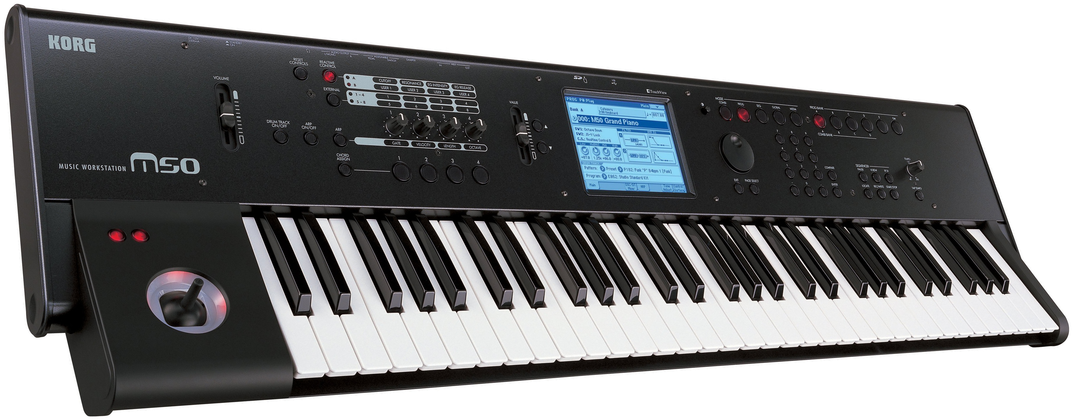 KORG M50-88 Клавишная рабочая станция, 88 молоточковых клавиш, технология синтеза EDS, сенсорный дисплей TouchView, двойной полифонический арпеджиатор, 608 программ, 384 комбинации, 671 паттерн ударных, 5 инсерт-эффектов, 2 мастер- и 1 глобальный эффект
