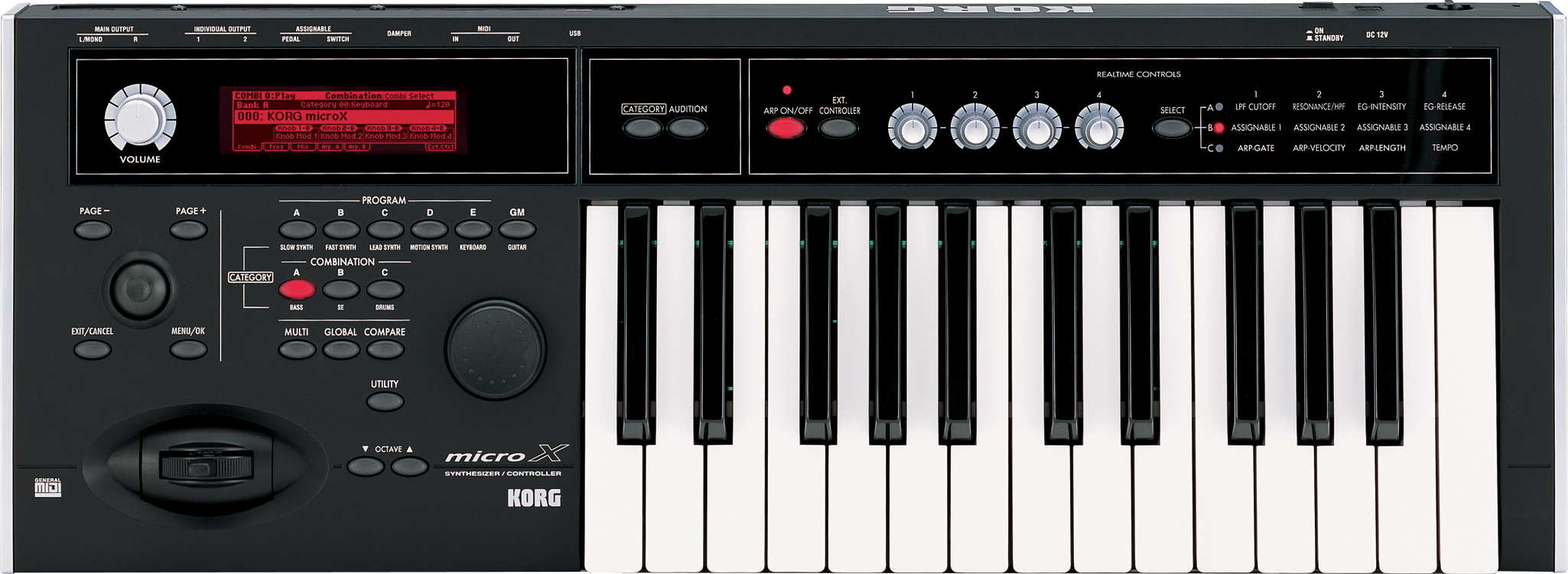 Не имеет значения, каким количеством звуков может похвастать инструмент, но о нем нельзя сказать, что он «удобный», если в нем нельзя быстро найти то, что нужно. Система поиска звуков microX базируется на функции выбора по категориям, как в нашумевших сериях рабочих станций Korg workstation, где есть специальная легкодоступная клавиша Category. Более того, эта функция усовершенствована благодаря внедрению прямого доступа к наиболее популярным категориям, таким, как синтезированные звуки, клавишные, бас-гитары и ударные, с клавиш на лицевой панели. Выбор необходимой категории становится абсолютно интуитивным. Также есть клавиша Audition, которая проигрывает соответствующую выбранному звуку демо-фразу, благодаря чему легко появляются идеи, как более эффектно использовать этот звук.