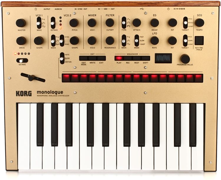 Korg Monologue – полностью программируемый одноголосный аналоговый синтезатор с клавиатурой на 2 октавы и функциями аналогичными Minilogue. Инструмент получил новое звучание и ряд современных функций, позволивших сделать модель в полной мере универсальной, подходящий для музыкантов разного уровня, играющих в разных стилях.