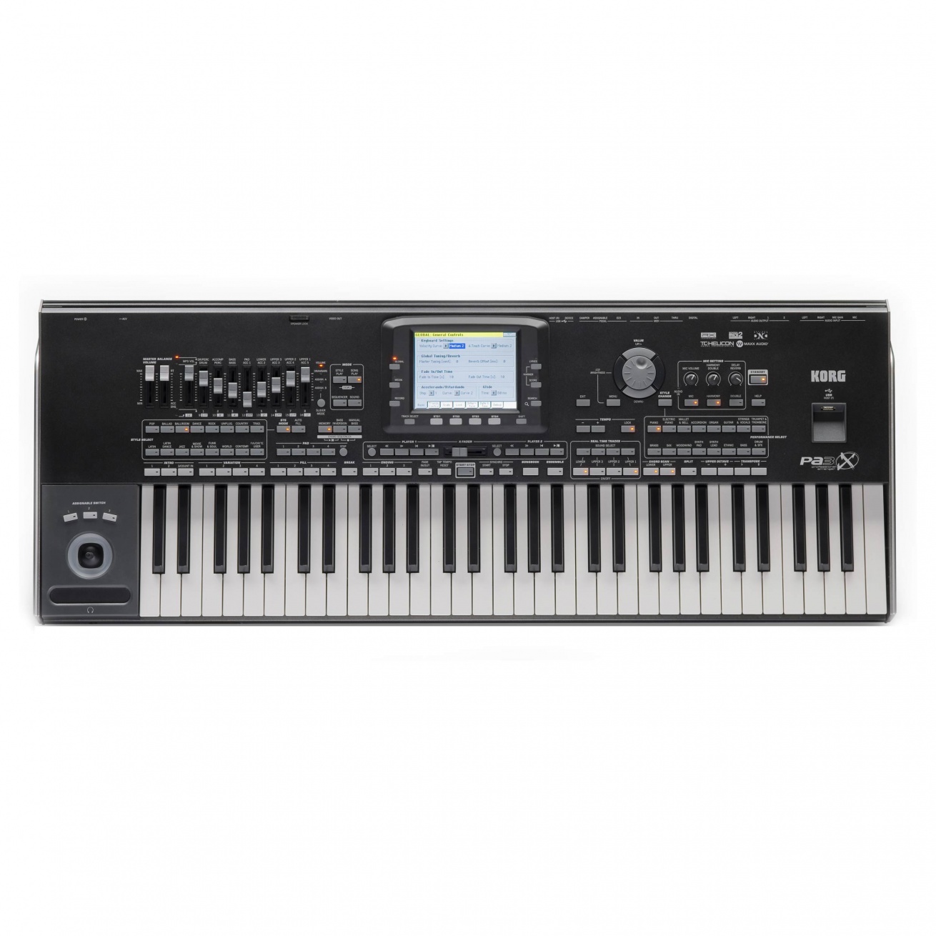 Элегантный алюминиевый корпус и удобный пользовательский интерфейс подчеркивают отменный вкус разработчиков. Главная панель была оптимизирована для обеспечения эргономики слайдеров и регуляторов, а также для более интуитивного их управления. Графический пользовательский интерфейс также был обновлен с добавлением новых иконок и объектов, благодаря графическому цветному сенсорному TFT-экрану. Теперь на экране отображаются новые боковые вкладки, что обеспечивает быстрый доступ к наиболее важным функциям. Новая функция Search облегчит поиск нужной информации и настроек во время исполнения. 76-клавишная модель Pa3X оборудована поворотным дисплеем.