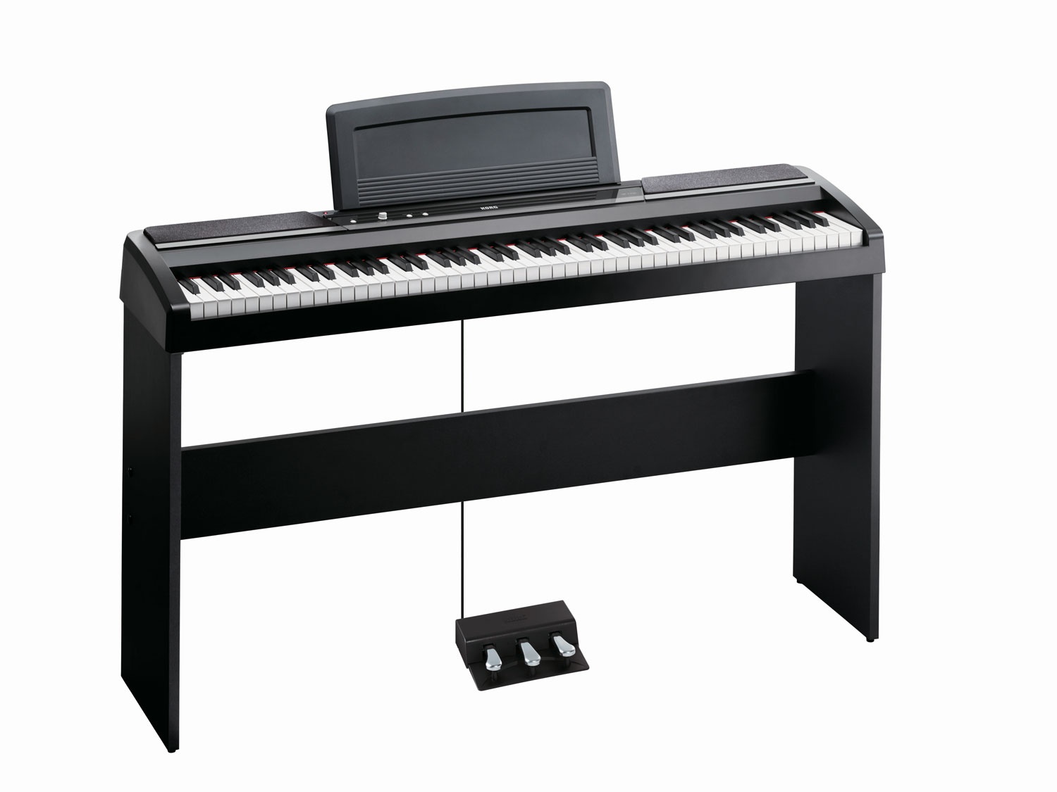 - Дополнения и аксессуары:сетевой блок питания, присоединяемый пюпитр, педальный модуль (3 педали: сустейна, заглушения, полупедали) и корпус-подставка (SPST-1W-BK)