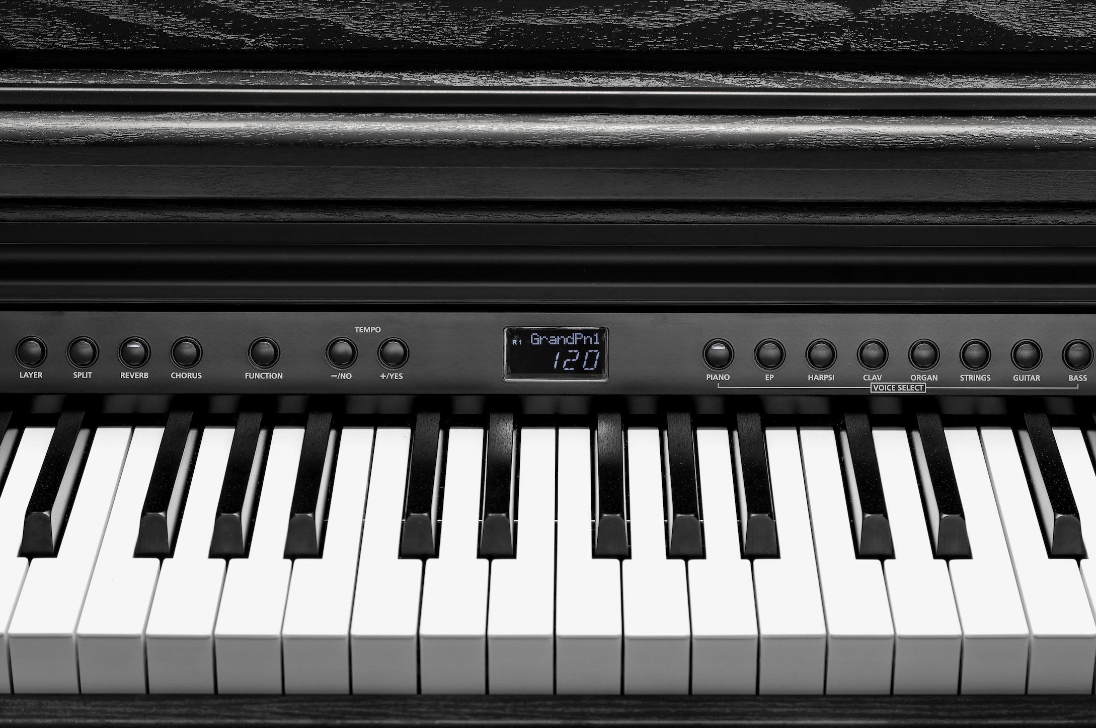 - Клавиатура: 88 клавиш, полностью взвешенная, 4-зонная градуированная молоточковая механика с регулируемой чувствительностью к касанию (H1 Ivory)