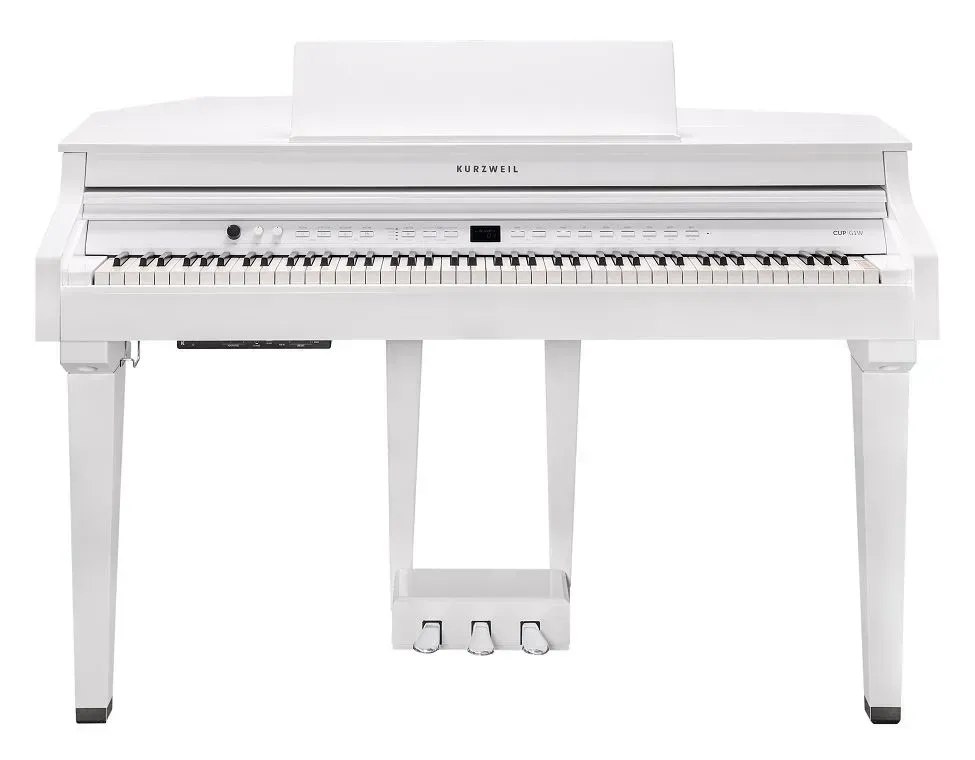 Цифровой рояль CUP G1W. 88 клавиш с полновзвешенной молоточковой механикой и 4 уровнями чувствительности клавиш (H1 Ivory). Библиотека KORE 2.0 (2GB) полифония 256 голосов, 28 программ, функциональность разделения и наслоения тембров, транспонирование, эффекты: Reverb, Chorus, EQ, 10 ритмических паттернов, рекордер на 1 трек, 1 песню, акустическая система 50 Вт (2 x 25Вт), MIDI по USB, Bluetooth: BT 5.2 Audio/MIDI, 3 стандартные рояльные педали. Цвет: белый полированный, размеры: 88.9 х 33.5 х 141 см, вес: 68 Кг.